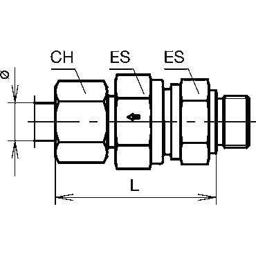 Rozsah dodávky kompletního zpětného ventilu: hrdlo, zářezný kroužek a převlečné matice.
