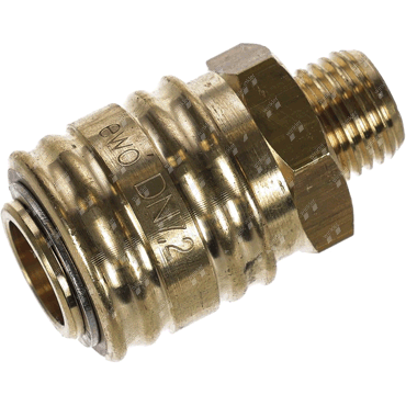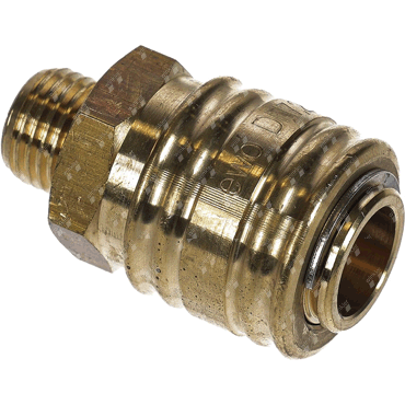 Jednoruční rychlospojka s rolovacím zámkem, zpětný ventil je umístěn ve spojce, při spojování se násilně odjistí, zátka je bez zpětného ventilu, vyrobena z mosazi. Strana spojky: DN 7,2