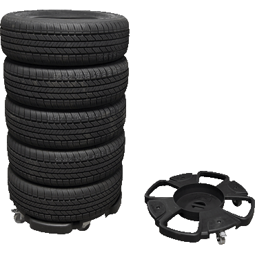 ideální pro demontáž a otáčení pneumatik Se čtyřmi otočnými kolečky, ztoho jedním brzděným, a robustním rámem odolným proti UV záření je vozík na pneumatiky účinným pomocníkem do interiéru i exteriéru.
