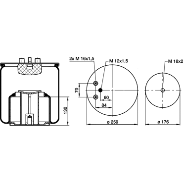 2x ø 9,8 mm / M 10 / M 24x1,5