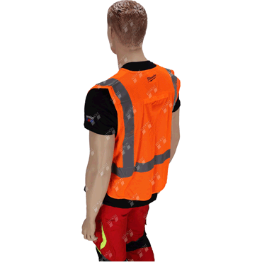 10 Taschen für viel Tragevolumen, klare ID-Ausweistasche zur einfachen Identifizierung auf der Baustelle, einstellbare Größe an der Innenseite für gut sitzende Warnweste, Rückenöffnung für Absturzsicherung