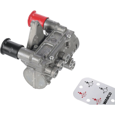 Das Park-Löse-Sicherheitsventil (PREV) ersetzt in den EBS Anhängerbremsanlagen das bisher verbaute Anhänger-Bremsventil und das Doppellöseventil. Es beinhaltet die Anhängerbremsventil typischen Funktionen wie Abrissfunktion oder Druckrückhaltung bei abgekuppeltem Anhängerfahrzeug sowie die Funktionen eines Doppellöseventils.