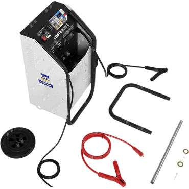 automatisches und fahrbares 12-24 V Lade- und Startgerät, liefert eine 100 %ige Ladung mit einer Zeitersparniss von 50 % zu herkömmlichen Ladegeräten, 24-Stunden-Regenerierungsprogramm zur Wiederherstellung teilsulfatierter und tiefentladener Batterien ab 1 V, erkennt automatisch beschädigte oder sulfatierte Batterien, in diesem Fall liefert das Gerät keinen Strom um die Fahrzeugelektronik zu schützen, automatischer Startvorgang nach Betätigung des Zündschlüssels, Einstellmöglichkeit eines Universalmodus falls der Batterietyp nicht bekannt ist, Lichtmaschinentest, Schutz vor Überlastung und Verpolungsschutz der Anschlussklemmen, integriertes Kabelfach für die Ladekabel mit vollisolierten Klemmen