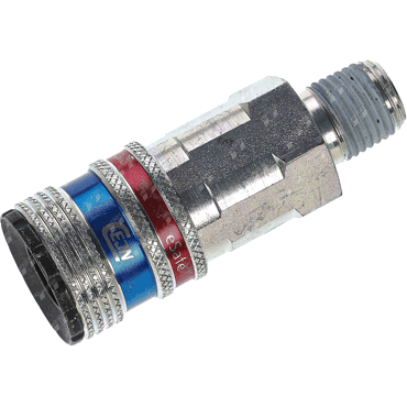 Sicherheit durch Druckentlastung, hohe Durchflusskapazität, langlebige und robuste Ausführung. Niedrige Anschlusskraft und sicheres Arbeitsumfeld. Einhandbedienbare Sicherheitskupplung, die vor dem Entkuppeln den Druck ablässt, somit keine Gefahr eines Schlauchrückschlags. Aussengewinde an Kupplung und Nippel sind werksseitig mit einer Gewindedichtung versehen. Vollautomatische Ablauf vereinfacht Bedienung. CH-Standard (auch ARO 210, CEJN Serie 300).