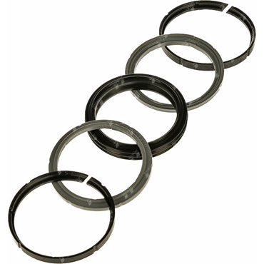 Der doppeltwirkende Kolbendichtsatz besteht aus einem Elastomer-Dichtteil, 2x Anti-Extrusions- und 2x Winkelführungsringen.