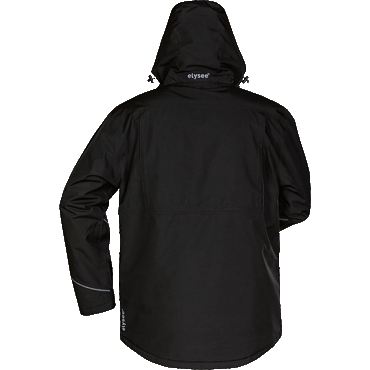wind- und wasserdicht, hoch atmungsaktiv, besonders leicht und bequem, Nähte geschweißt, abzippbare Sturmkapuze im Kragen, ergonomisch geformt, verstellbar, mit Fleece-Futter, verdeckter robuster 2-Wege Front-Reißverschluss, hoher Kragen zum Schutz vor Witterung, die Reflexeinsätze sorgen für verbesserte Sichtbarkeit und ein modisches Design, wärmendes Fleece-Innenfutter im Oberkörperbereich, bequemes Taftfutter im Saum- und Ärmelbereich, weitenregulierbarer Ärmelbund mittels Klettverschluss, Bewegungsfalten im Rücken, verstellbarer Saum, einfache Emblemanbringung durch Reißverschluss im Futter, Taschen: 2 Brusttaschen mit Reißverschlüssen, 2 Hüfttaschen mit Reißverschlüssen, 2 Innentaschen mit Klettverschlüssen