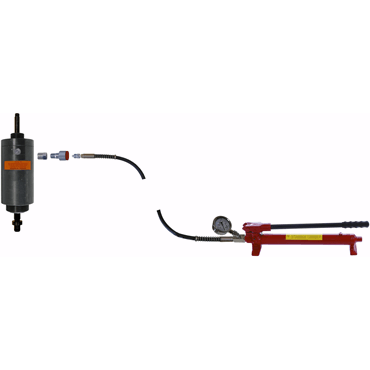 KL-0215-35 M25 - Hydraulik-Pumpe Zulässige Kraft max.: 170 kN (17 t) Hub max.: 45 mm Öldruck max.: 700 bar Ölvolumen max.: 122 cm³ Kolbenfläche: 27 cm² Gewinde im Hohlkolben: M20 Befestigungsgewinde druckseitig: 2¼“-14 UNS Befestigungsgewinde zugseitig: M42x2 Zylinder Außendurchmesser: 80 mm Zylinder Bauhöhe eingefahren: 202 mm Zylinder Bauhöhe Kolben ausgefahren: 247 mm Anschlußgewinde für Hydraulik-Kupplung: 3/8“ NPT Gewicht: 5,2 kg