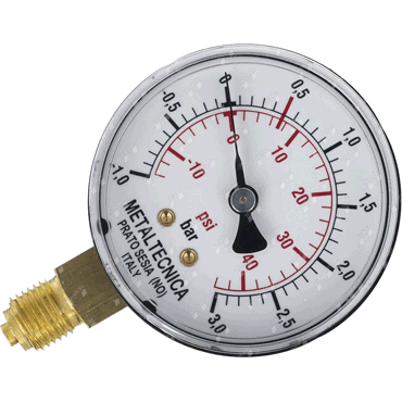 Anschluss unten, rote Markierung bei 0,5 bar