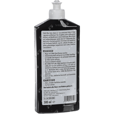 is a medium strength polish with color pigments and wax components It smoothes, polishes and preserves all colored and metallic paints in one operation. small scratches and paint damage are covered by the color pigments and protected from corrosion Polish+Wax Color gives the paint brilliant color strength, ensures a brilliant high gloss and weather-resistant long-term protection with genuine natural carnauba wax.