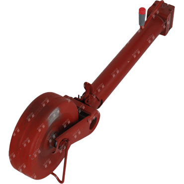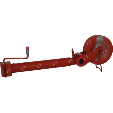 Universal stabilizing wheel e.g. for single-axle trailers, loader wagons and manure spreaders. The stabilizing wheels are UVV-tested and comply with the guidelines of the German Association of Agriculture Trade Cooperatives. Due to their solid construction type the support wheels offer a safe stand at any time.