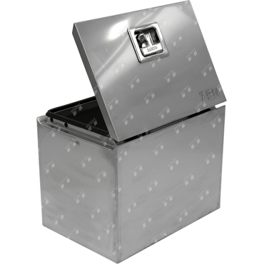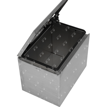 Toolbox with 1.2 mm wall thickness, Europlex lock (stainless steel lock) and ergonomic handle, with SSE approval 73 R-010014 on the toolbox. A pre-fitting for the attachment of dampers, chains or a steel cable is already available.