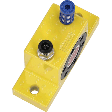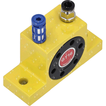 turbine vibrator for loosening the silo contents The vibrator does not require lubrication (maintenance-free) and can be used in all positions. Clean and oil-free compressed air (max. 6 bar) is required for long and trouble-free operation. Delivery includes hose nozzle for the compressed air connection and muffler. It is recommended to install a 20 μm oil filter upstream. The vibrator is designed to be explosion-proof.