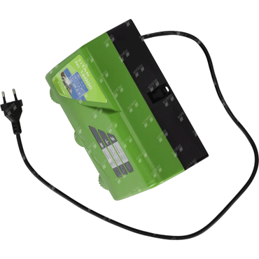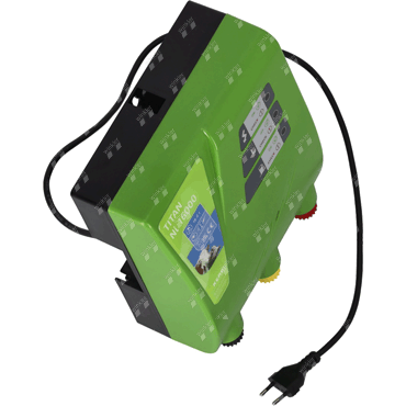 for long fences with heavy vegetation, strongly reduced power consumption in normal operation, alarm function permanently monitors the fence, triggers alarm in case of continuous contact and slows down the pulse train, 2-color LED lights for output voltage, grounding status and power consumption, ground rod 4x 1 m, 2x 2 m, power consumption 13 W