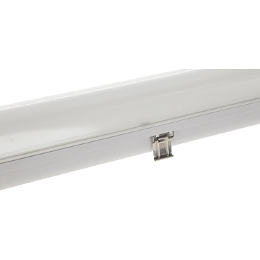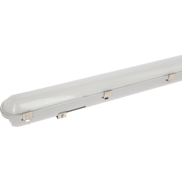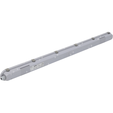 perfectly suited for rough use in wet, damp or dusty environments, high energy cost savings, waterproof and dustproof, including stainless steel mounting clip, with D mark according to DIN EN 60598-2-24, thus also suitable for areas at risk of fire due to combustible dusts or fibers (hay storage, animal feed, bedding, etc.)
