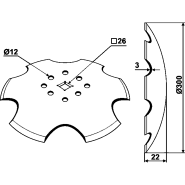 Harrow disk, ø300mm, curved, 3mm, ø110mm