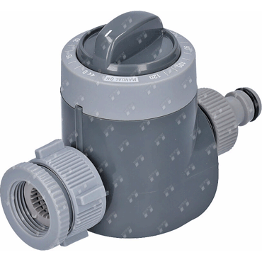 suitable for manual garden watering, ready for connection to water taps with 3/4" thread, permanent water flow possible, no battery necessary, watering intervals: from 5 minutes to 2 hours, infinitely adjustable