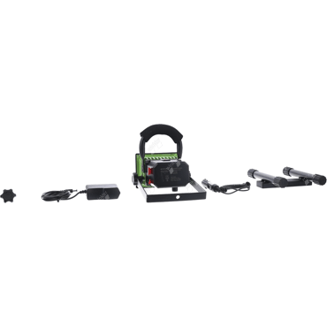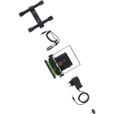 continuously dimmable floodlight with 360° swiveling lamp head, housing made of sturdy aluminum and tempered glass, over- and discharge protection, including charger 230 volt and 12 volt car charger