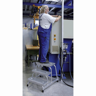 stable, welded tubular construction, steps made of non-slip steel grating, springer ends with non-slip plastic shoes.