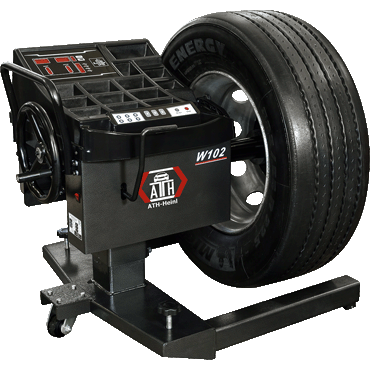 mobile wheel balancer for trucks, buses, vans and car tires, manual drive with hand brake and five balancing programs (static/dynamic/aluminum programs in truck or car mode), no additional wheel lift required as the complete balancing unit can be lifted with the wheel mounted, precise work thanks to state-of-the-art microprocessor control scope of delivery: Cone set (45 - 225 mm and 270 - 287 mm), quick-release nut, weight pliers, rim width gauge (truck), calibration weights