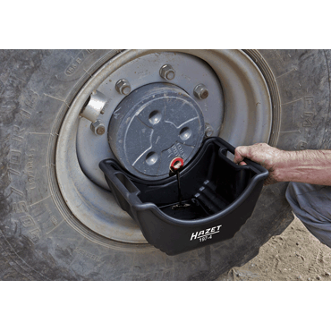 safely collecting the oil that runs out of the axle when dismantling or repairing the quick-release axles on commercial vehicles, chemical-resistant and break-proof plastic, with a smooth, abrasion-resistant surface