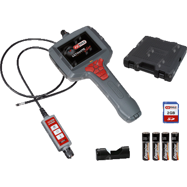 locking function of the viewing angle by means of a locking switch on the transmitter, 3 dimmable mini LED lamps, transportable and mains-independent system, optimum handling thanks to mains-independent operation, probes are much less sensitive to kinks as there is no fiberglass cable, working temperature from +0°C to +55°C, widest possible viewing angle thanks to special camera in the probe head, optionally expandable with other probes, very good image and video quality, image recording in JPEG format, video recording in MPEG4 format, viewing on a TV with AV cable possible, multilingual menu (14 languages), versatile, 2-component housing of the basic device protects against light impacts, with high-quality foam insert, in sturdy plastic case, scope of delivery: basic device, attachment mirror, AV cable, 8 GB SD memory card, USB data cable, battery set 4xAA, selected probe