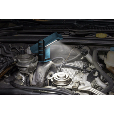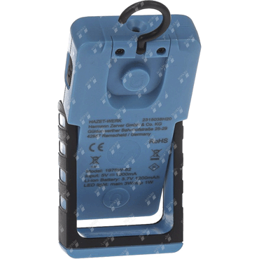 innovative wireless charging!, 180° adjustable and 8-stage lockable base for adjusting the work area illumination, high-quality 2-component plastic housing with rubberized surface, infinitely dimmable for optimum light adjustment, 4-stage battery status and charge level display, switch on/off and change between top and main light via main button, strong rubberized holding magnet on underside, 360° movable holding hook