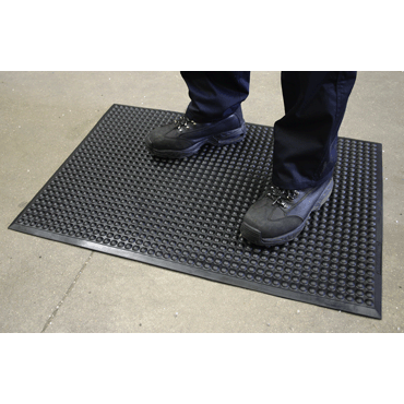 robust ESD workstation mat for optimum, cushioned standing comfort made of polyurethane, ESD anti-fatigue mat that effectively prevents the effects of long periods of standing, ESD mat with discharge resistance (Rgp): 1.4 x 106 Ohm and point to point resistance (Rp-p): 2.4 x 106 Ohm, anti-slip mat with non-slip surface R10 according to DIN51130, fire behavior tested according to DIN4102 B1, the ESD floor mat protects users and components from the dangers of static discharge