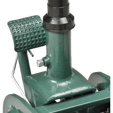 with low pick-up height, low chassis height of 225 mm, the flat body makes lifting points accessible under most vehicles, quick stroke, additional foot pedal for quick raising of the saddle, protection device against overload (overpressure valve), drain valve ensures controlled and safe lowering, ergonomically shaped rubber covered handles for better operator comfort, lifting and turning lowering system, powder coated, cylinder protection sleeve keeps dirt and welding spatter away, robust fully welded steel construction of highest steel quality, 3-year warranty