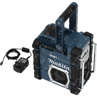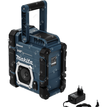 rugged high performance Bluetooth radio with IP64 enclosure protection classification, runs on 7.2-18V Li-ion batteries or the included AC adapter, easily connect to your smartphone via Bluetooth and play music, DAB+ reception, AUX port and USB port, the latter also for charging your smartphone