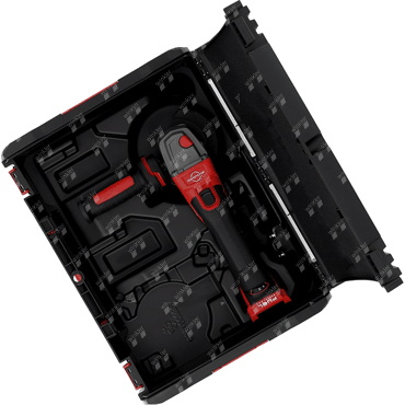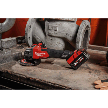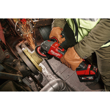 similar power to a 1200W corded tool, RAPIDSTOP™ for fast disk braking in under 2 seconds for high user protection, anti-kickback, overload protection, restart protection with soft start, AVS side handle, tool-less disk change, cut protection.
