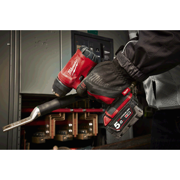 powerful - hot air up to 470 °C. reaches operating temperature in just 6 seconds. REDLINK™ electronics - overload protection in the machine and battery ensures a long service life. individual cell monitoring for optimized service life and long battery life integrated hook for easy hanging, e.g. on a ladder. LED illumination of the work area. The REDLITHIUM™ battery offers a perfectly tuned design, advanced electronics and lossless power output for longer service life and longer life than previous models. 100 % system-compatible with the MILWAUKEE®-M18™ product range, scope of delivery: 1 x reducing nozzle, 1 x reflector nozzle, without battery and without charger