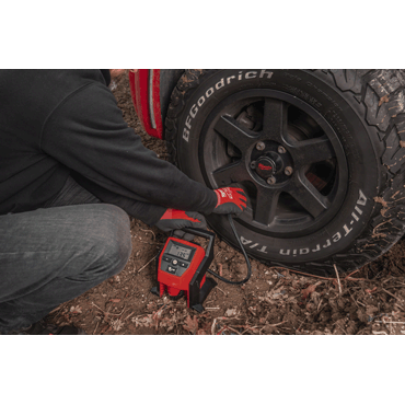 ideal for inflating car tires, compact design, anti-vibration foot - rubber coating prevents the device from slipping during use, auto-shutoff function - device switches off automatically after reaching the predefined pressure, illuminated LCD display with digital pressure display, easy storage option for the hose (66 cm) available on the device, REDLITHIUM-ION™ battery with single cell monitoring for a long service life, 100% system-compatible with the Milwaukee® M12 product range, scope of delivery: ball needle, auto valve adapter, Schrader valve adapter, Presta valve adapter