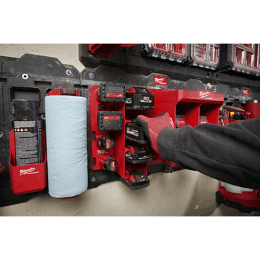 storage option for batteries. clip in the batteries for safe storage. quick access to all batteries. safe and easy installation with Click & Lock mechanism. design your workshop exactly as you wish. part of the PACKOUT™ modular storage system.