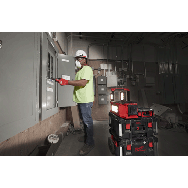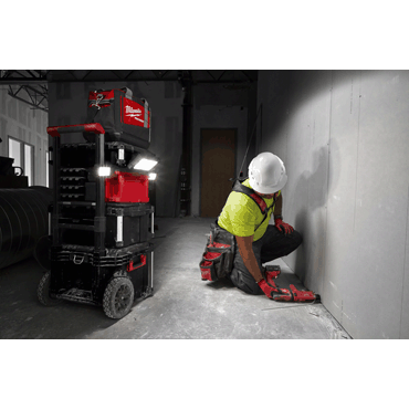 Three pivoting light heads produce up to 3000 lumens of TRUEVIEW™ brightness at the highest level. All three swivel light heads together offer a runtime of up to 12 hours with an M18™ REDLITHIUM™ 5.0 Ah battery. resistant to dust and splash water (protection class IP 54). integrated M18™ and USB charger. full system compatibility with the PACKOUT™ storage system. hybrid power source: operates with either an M18™ REDLITHIUM™ battery or with the included cable. compartment for devices and small parts. 9 modes for optimum output or runtime. low charge warning - lamp starts flashing.