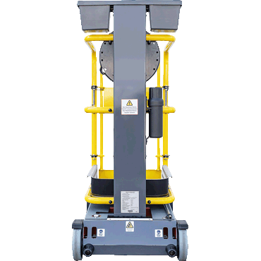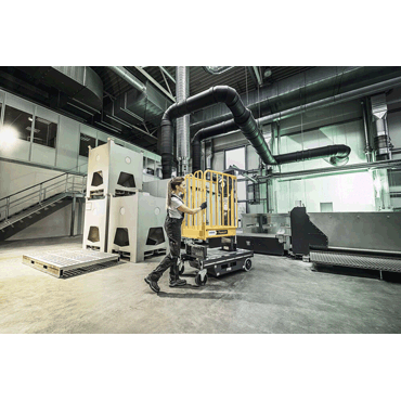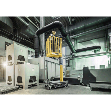 manually operated vertical mast lift with intuitive one-hand operation. all-round safe working area up to working heights of 3.50 m indoors. automatic braking device when lifting the workman basket. robust design for long durability. continuous and currentless lifting mechanism with gas pressure spring. easy entry and exit via swing door. low operating costs, practically maintenance-free. anti-theft device with padlock. recesses for transportation by forklift truck. practical storage tray for tools and materials. maximum load: 150 kg (1 person).
