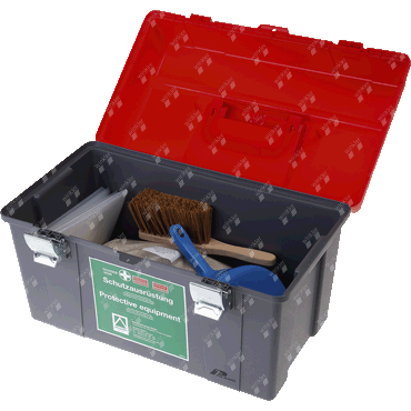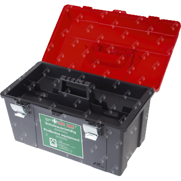 ADR emergency set in case The case is big enough to easily accommodate existing personal protective equipment. additional items such as folding spades, warning vests and hazard warning lamps can also be accommodated can be simultaneously used as a collecting tray and be locked with a padlock