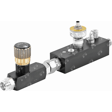 In addition to pressure measurement, the exact determination of volume flows in hydraulic systems is an important statement about the condition of the hydraulic system. The performance of hydraulic drives such as hydrostats or controlled pumps depends on the flow rate. The hydraulic power is determined from pressure and volume flow. The measuring turbine has a small flow resistance. combined pressure, temperature and flow rate with additional sensors is possible A downstream pressure loading valve provides analysis without running the application. combined pressure, temperature and flow rate with additional sensors is possible A downstream pressure loading valve provides analysis without running the application.
