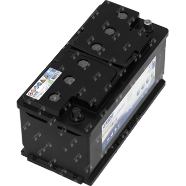 supply battery for professional application, long service life and safety for cyclical applications and high discharge depth, constant starting power across the entire service life, more available capacity thanks to complete gel battery discharge, 100% maintenance-free, heavy duty, minimum self-discharge, after 6-month idle time still over 80% capacity, no acid mist emission, hazard-free use inside vehicles possible