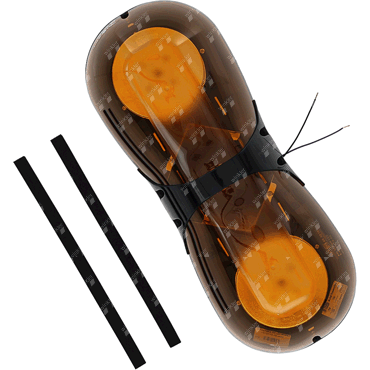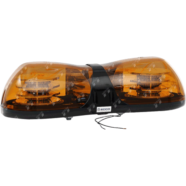 aerodynamically styled LED light bar with extremely compact dimensions and impact-resistant yellow light dome made of polycarbonate, suitable for construction machinery, service vehicles, etc., completely cabled including 2 LED modules, mounting with two connection hollow screws M 16x2 at a distance of 150 mm