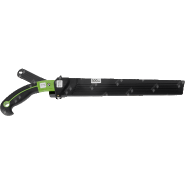 fixed saw with double row of saw teeth, each tooth ground from 3 sides, hard chrome plated, quiver included