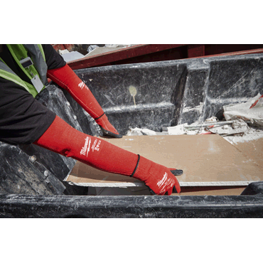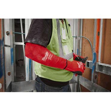Highly elastic nylon material with 4-way stretch points for optimal fit, tapered design (wider at the upper arm and tighter at the wrist) for an optimal fit to the natural arm shape, elastic upper arm cuff with non-slip rubber and stretch wrist cuffs for optimal fit and secure hold, breathable and lightweight material for good mobility and all-day wearing comfort..., elastic thumb loop prevents pressure points, cut protection according to European standard: EN ISO 21420 and EN388:2016 (2342C).