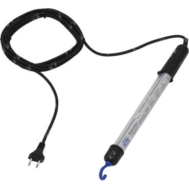 fluorescent hand lamp with electronic ballast, with rotating plastic hook and rubber cable H05VV-F2x0.75
