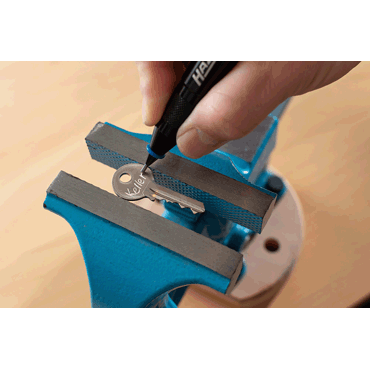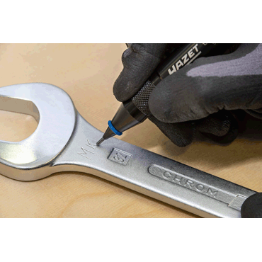 precise and permanent marking (theft protection, installation date, etc.) of workpieces (up to HRC55) metals / stone / ceramics / plastics, robust metal housing, soundproofed, slim design and optimum feel, anti-kink spring prevents kinking of the hose, knurled power control