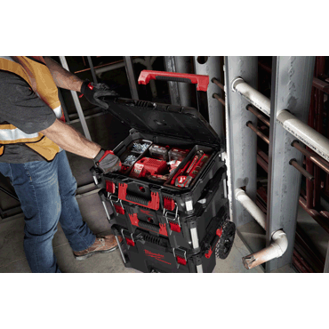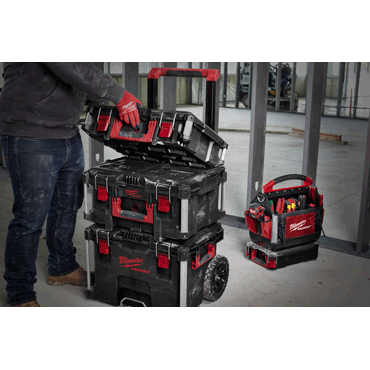 part of the PACKOUT™ modular storage system. construction with shock-resistant polymers - ideal for construction site use. IP65 protection class protects against dust, water and dirt metal struts reinforce the corners of the case. closures with metal clasps includes additional boxes for neatly storing small parts. installation option for the ONE KEY™ TICK™. additional metal carrying handle in the case lid for easier transportation (only for the large case).