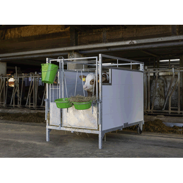 Le box pour veau permet au veau d'avoir beaucoup d'air frais et évite qu'il soit en courant d'air. Il protège également le veau des germes de maladies. L'animal ne repose pas directement sur le fond du box, mais sur un plancher surélevé. Ainsi le veau est plus au chaud et au sec. La porte en deux parties est idéale pour apprendre aux veaux à utiliser les seaux à tétine. L'éleveur peut quitter le box sans déranger le veau qui s'abreuve.