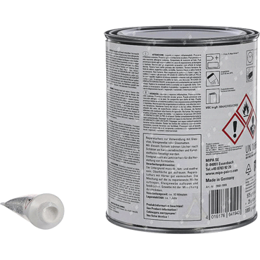 Mipa P 20 est une résine époxy réduite en styrène qui durcit rapidement avec un durcisseur à peroxyde de benzoyle. Utilisé avec un tissu de verre ou une feuille de verre, c'est un système efficace pour réparer facilement et vite les trous de grande tailles sur les pièces en fibres de verre et tôles de carrosserie. Le couvercle de mélange pour Mipa P 20 réduite en styrène peut être commandé. Mipa P 20 réduite en styrène convient pour la réparation de gros trous sur les pièces de carrosserie. Leur bonne adhérence sur le fer et la fibre de verre permet une utilisation universelle. C'est pourquoi Mipa P 20 réduite en styrène peut aussi s'utiliser comme matériau composite par ex. pour élargissement d'ailes et pièces montées. Les superstructures ou les transformations sur les véhicules automobiles sont soumises à autorisation ! La teneur en styrène de Mipa P 20 réduit en styrène est de 10%. avec durcisseur