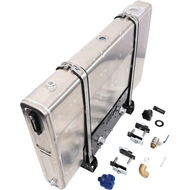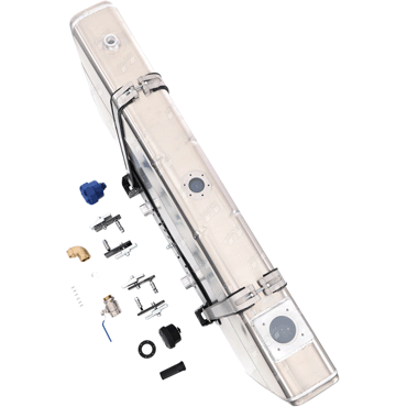 Lieferumfang: Ölbehälter mit Einfüllfilter, Schauglas, Trägerplatte für Kabel und Steckverbinder und Montagesatz mit Stoßdämpfer. Der Ölbehälter verfügt über 2 Rücklaufmöglichkeiten 1x seitlich und 1x oben auf dem Tank.