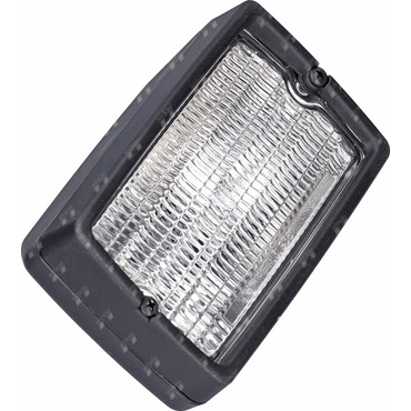 munka lámpa prizmás optikával, fekete ház üvegszál erősítésű műanyagból és kiálló peremmel, amely a szórótárcsát védi