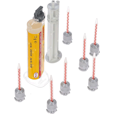 Uniwersalny, wypełniający szczeliny klej żelopodobny, odpowiedni do metali, większości tworzyw sztucznych, gumy, drewna, papieru i skóry. Składa się z 2 komponentów A 9gr i B 1gr. Przed klejeniem część należy oczyścić środkiem odtłuszczającym Loctite SF 7063 i, jeśli to konieczne, użyć podkładu Loctite SF 770 w zależności od tworzywa sztucznego.