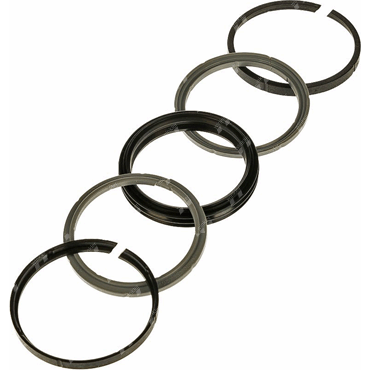 Zestaw uszczelnień tłoka dwustronnego działania składa się z elastomerowej części uszczelniającej, 2x przeciwdziałających wyciskaniu i 2x kątowych pierścieni prowadzących.